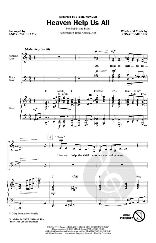 Create a special moment in your concert with this smooth, well-crafted Stevie Wonder ballad (#1, 1973). Available: SATB, SAB, Instrumental Pak, ShowTrax CD. Performance Time: Approx. 3:30.