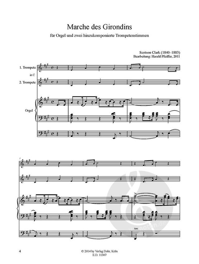 Der 'Marche des Girondins' A-Dur ist im Original für Orgel solo geschrieben. Die Trompetenstimmen sind eine freie kompositorische Ergänzung. Es liegt auch eine Fassung für Orgel und eine Trompetenstim...
