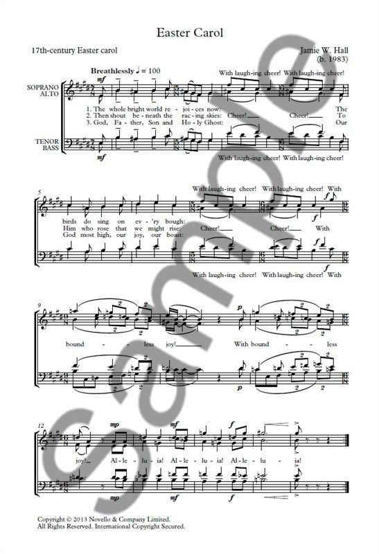 This setting of a 17th-century Easter carol for Unaccompanied SATB Choir is by Jamie W. Hall.