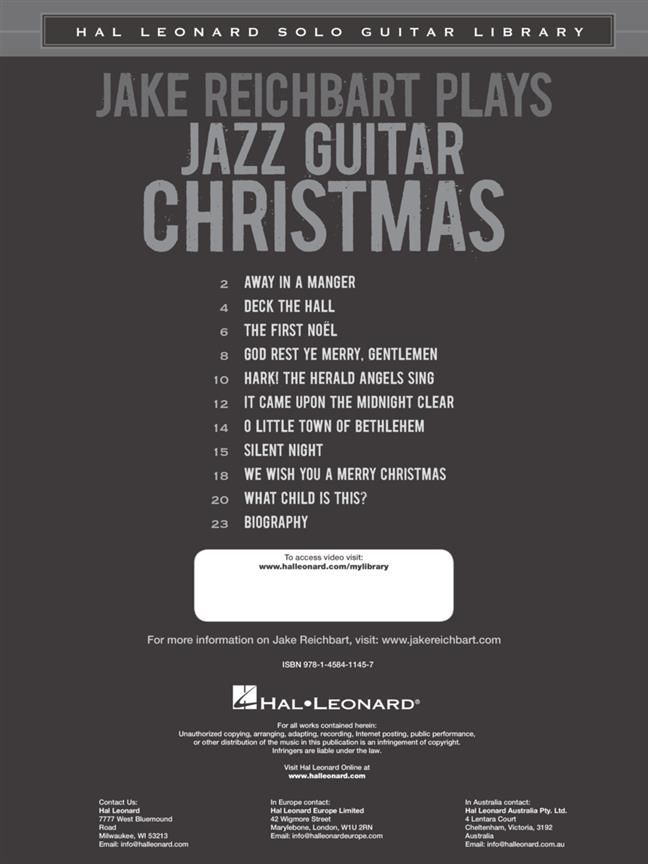 Ten stylish performance ready chord-melody arrangements of Christmas favorites in standard notation and tablature by Jake Reichbart, one of the busiest freelance guitarists in the business. This uniqu...