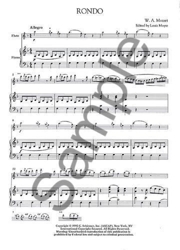 For flute and piano. Includes Concerto in G Major, K. 313; Concerto in D Major, K. 314; Andante in C Major, K. 315; 'Allegro' from Piano Sonata in C Major, K. 545; 'Rondo alla Turca: Allegretto' from...