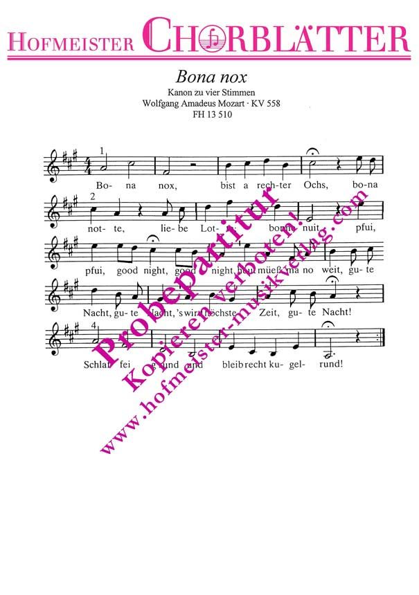 Wolfgang Amadeus Mozart Noten für Frauenchor