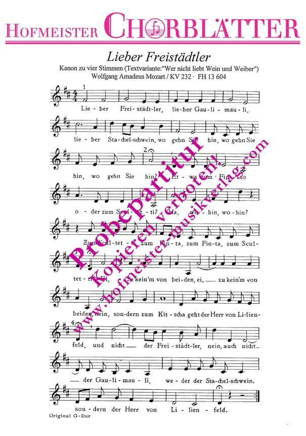 Wolfgang Amadeus Mozart Noten für Frauenchor finden Sie hier!