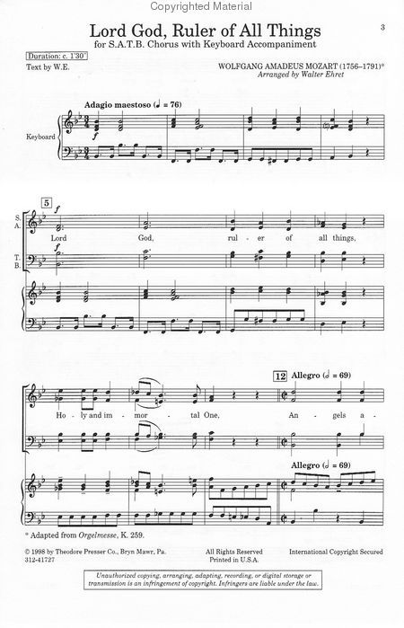 Originally written for four-part chorus, organ and strings, this motet is one of the most frequently performed Mozart choral works. Russell Robinson has adapted this work for our Developing SATB Reper...