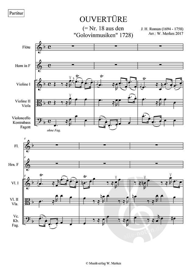 Der schwedische Hofkapellmeister Johan Helmich Roman (1694 -1758) schrieb 1728 für ein beim Grafen Golovin stattfindendes Fest eine Reihe von 45 Musikstücken, im Wesentlichen handelt es sich dabei woh...