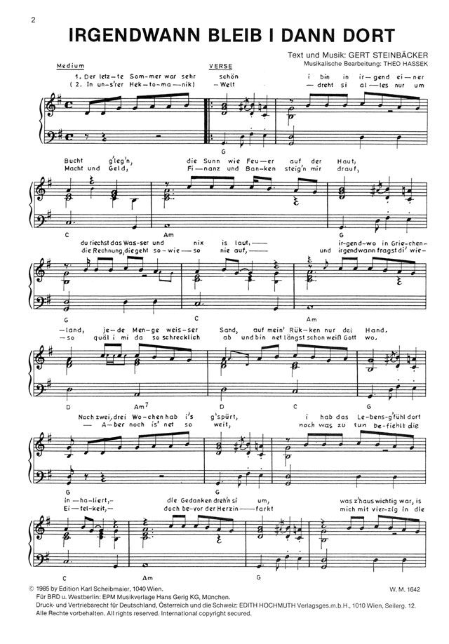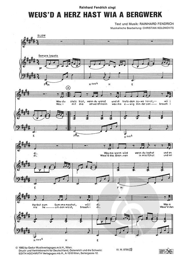 Einzelausgabe (Noten für Klavier, Gesang und Gitarre) des Liebeslieds von Rainhard Fendrich. Sehr beliebt bei Hochzeiten.