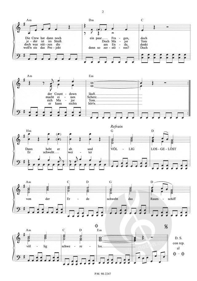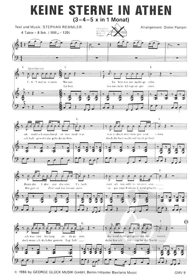Einzelausgabe des Hits (1983) von Neue Deutsche Welle-Sänger Pierre ('Peter') Schilling für Gesang und Klavier mit den Akkordsymbolen. Deutscher Text.