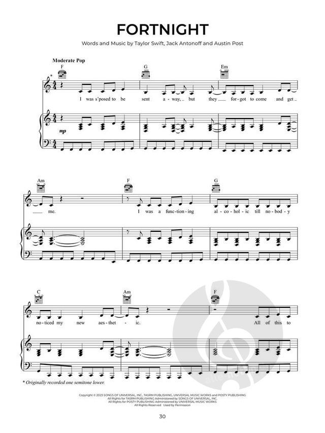 20 massive hits from 2023-2024, specially arranged for piano, voice and guitar with chord symbols, chord diagrams and full lyrics. Includes 'Beautiful Things', 'Fortnight', 'Stick Season', 'vampire',...