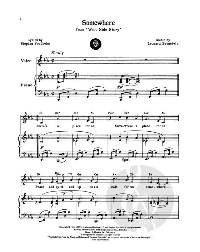 A piano/vocal arrangement with chord names for this classic piece from West Side Story.