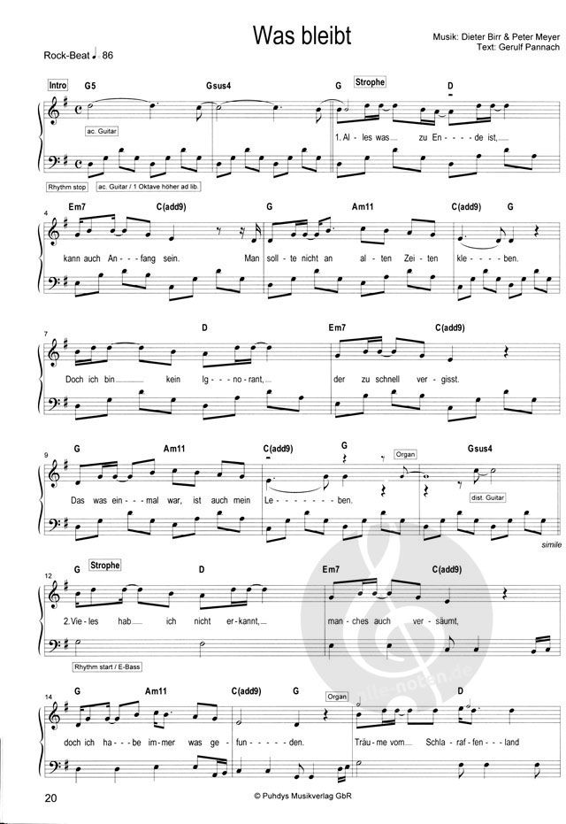 Klavier, Gesang & Gitarren-Akkorde (Melodie rechte Hand).