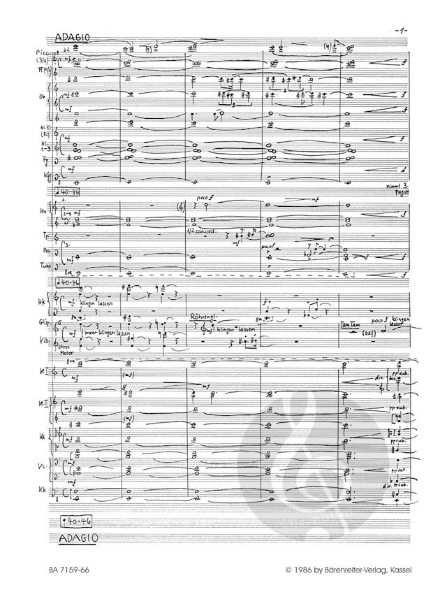 Besetzung: 2 Picc, 2, 2, 2, 2, Kfag - 4, 4, 4, 2 - Pk, Schlg (4) - Klav - Str/ca. 18 Minuten Uraufführung am 29. August 1988 in Hamburg, Schleswig-Holstein Musik Festival: Orchesterakademie des Festiv...