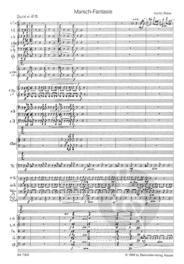 KlavSolo, Flöte (2)/ Piccolo, Oboe (2), Klarinette in b (2), Fagott (2), Kontrafagott, Horn (3), Trompete (2), Posaune (2), Pauke, Schlagzeug (2), Gitarre, Harfe, Streicher - Studienpartitur