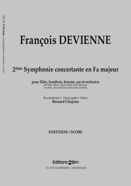 Obwohl es in Frankreich am Ende des 18. Jahrhunderts nur wenige große Komponisten gab, wäre es ungerecht, Gossec und Méhul nicht als zwei der bedeutendsten dieser Epoche zu erwähnen. Der Einfluss der neuen Art von Instrumentalmusik der Mannheimer Schule machte sich in Frankreich nach 1770 mit der Verbreitung der konzertanten Sinfonie bemerkbar, die bis etwa 1830 großen Erfolg hatte. In diesen etwa sechzig Jahren wurden verschiedene konzertante Instrumente verwendet, wobei die Kombination von Flöte, Oboe, Horn und Fagott zu den beliebtesten gehörte. Mozart war mit seiner konzertanten Sinfonie KV 297, die er 1778 für seine Freunde Wendling, Ramm, Punto und Ritter komponierte, ein Pionier dieser Kombination. Diese 2. konzertante Sinfonie in F-Dur ist ebenfalls für Flöte, Oboe, Horn, Fagott und Orchester. Sie besteht aus drei Sätzen: Allegro, Adagio, Menuett und Variationen. Das Allegro beginnt mit einer ausführlichen Orchestereinleitung, in der die Solisten zu hören sind und so die Orchesterfarbe bereichern. Dann verkünden die Solisten in Nachahmung eine fragende Phrase aus langen Tönen. Von diesem Punkt an zeigen Horn, Oboe, Fagott und Flöte ihre Virtuosität. Während der Durchführung findet ein Dialog zwischen den Instrumenten statt, wobei sehr interessante Modulationen in g-Moll und c-Moll verwendet werden. Nach der Reprise vereinigen sich die vier Solisten in einer Kadenz, die wahrscheinlich von Devienne selbst geschrieben wurde. Das Orchester beschließt das Werk mit sehr rhythmischen und brillanten Motiven. Das Adagio kann nicht als wirklich langsamer Satz angesehen werden, da es so kurz ist. Diese 15 Takte stehen in f-Moll und werden vom Komponisten sehr dramatisch wiedergegeben. Eine Kadenz der Solo-Oboe leitet den letzten Satz ein, ein Menuett mit Variationen. Ein schönes Thema wird von der Solo-Oboe und den Streichern vorgetragen. Es folgt ein Refrain, der bei jeder Variation wiederholt wird. In den aufeinander folgenden Variationen zeigen die Instrumente ihre Virtuosität: Flöte, Fagott, Horn und Oboe. Die fünfte und letzte Variation vereint alle Solisten und das Orchester zu einem freudigen großen Finale. Bernard Chapron