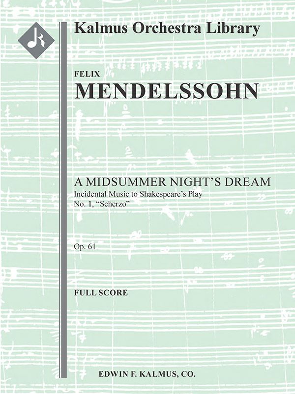 Felix Mendelssohn (1809-1847) schrieb gleich zweimal Musik zu William Shakespeares Stück EIN SOMMERNACHTSTRAUM. Die erste, die Konzertouvertüre in E-Dur op. 21, schrieb er 1826 im Alter von siebzehn Jahren aus keinem anderen Grund als der Liebe, die er und seine Geschwister für Shakespeares Bühnenwerke hegten. Die Schauspielmusik op. 61 (die wohl bekannteste Schauspielmusik des Repertoires) schrieb er 1842 im Auftrag von König Friedrich Wilhelm IV. von Preußen. Bei der Erstellung der vollständigen späteren Fassung übernahm der Komponist die ursprüngliche Ouvertüre op. 21 als Ouvertüre für die Bühnenmusik und die erste der 14 Nummern. Das Werk beginnt mit vier der wohl eindrucksvollsten und einprägsamsten Akkorde in der Musik und ist auch der Ursprung des Hochzeitsmarsches (Nr. 9), der heute bei so vielen Zeremonien verwendet wird und allgemein als "Here Comes the Bride" bezeichnet wird. Das Werk wurde am 14. Oktober 1843 in Potsdam vom Gewandhausorchester Leipzig unter der Leitung des Komponisten uraufgeführt. Der "Scherzo"-Satz Nr. 1 nach der Ouvertüre wird hier in Auszügen wiedergegeben, für diejenigen, die ein leichteres und kürzeres Stück für ein Programm suchen. Besetzung: 2.2.2.2: 2.2.0.0: Timp: Str (9-8-7-6-5 im Satz).