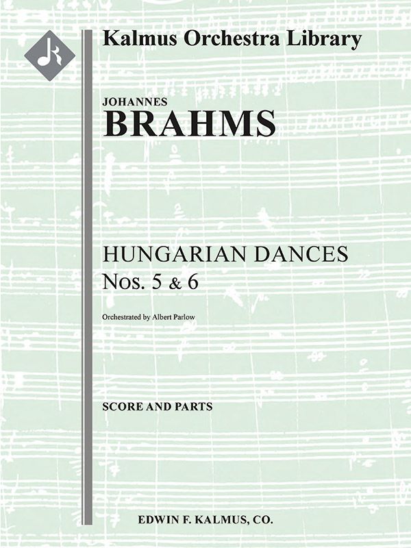 Diese ursprünglich 1879 für Klavier zu vier Händen geschriebene Folge von 21 lebhaften Tanzmelodien, meist über ungarische Themen, gehört heute zu den populärsten Werken von Johannes Brahms, und sie waren auch zu seinen Lebzeiten die einträglichsten für ihn. 1850 lernte Brahms durch den ungarischen Geiger Ede Reményi die "Zigeunermusik" kennen, darunter den Csárdás "Bártfai emlék" (Erinnerungen an Bártfa) des ungarischen Komponisten Béla Kéler, der die Grundlage für den Ungarischen Tanz Nr. 5 bildete. Der Ungarische Tanz Nr. 6 wurde im Laufe der Jahre für viele verschiedene Instrumente und Ensembles arrangiert. In der Orchestrierung von Albert Parlow aus dem Jahr 1885 wurde die Tonart des Ungarischen Tanzes Nr. 6 von der ursprünglichen D-Dur-Tonart nach D-Dur verlegt, während die Tonart für Nr. 5 die gleiche bleibt wie in der ursprünglichen Klavierfassung. Diese Ausgabe enthält sowohl Tenor- als auch Bassschlüsselstimmen für die Posaunen. Besetzungen: 1+Picc.2.2.2: 4.2.3.0: Timp.Perc(2): Str(9.8.7.6.5).