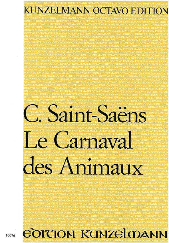 Saint-Saens' Le Carnaval des Animaux hat eine eigenartige Geschichte. Es dürfte vielleicht der einzige Fall sein, dass ein Komponist ein Werk nach wenigen Aufführungen zurückzog (abgesehen von einem kleinen Satz, der sich internationaler Berühmtheit erfreute), und es dann in seinem Testament wieder frei gab. Erst als Saint-Saens 1921 reich an Jahren und Ehren starb, wurde aus diesem Dokument der folgende, sich auf seine unveröffentlichten Manuskripte beziehende Passus bekannt: ? Ich untersage ausdrücklich jegliche Veröffentlichung eines meiner unveröffentlichten Werke, mit Ausnahme von Le Carnaval des Animaux, welcher von meinem üblichen Verleger, MM. Durand et Cie., herausgebracht werden darf.' So kam es, dass diese musikalische Burleske (vom Komponisten selbst mit dem Untertitel Große zoologische Fantasie versehen) endlich dem Publikum zur allgemeinen Erheiterung zugänglich gemacht wurde. Einige 60 Jahre früher, zwischen 1861 und 1865, als Saint-Saens an der Ecole Niedermayer in Paris Klavier unterrichtete, hatte er erstmals ein derartiges Stück für seine Schüler geplant, doch er setzte den Plan erst 1886 in die Tat um. Zu der Zeit war er schon der berühmte Komponist von Opern, Symphonien und Konzerten, und seine Tage als Klavierlehrer waren längst vorüber. Er komponierte den Carnaval während eines kurzen Ferienaufenthaltes in einer kleinen österreichischen Stadt, wohin er sich nach einer für ihn enttäuschenden Tournee zurückgezogen hatte, um ein paar Tage Ruhe zu geniessen. Das Werk wurde am 9. März 1886 im Rahmen des jährlichen Fastnachtskonzertes des Cellisten Lebouc uraufgeführt. Bei diesem Anlass waren die beiden Pianisten Louis Diemer und Saint-Saens persönlich anwesend. Ein paar Tage später wurde es wiederholt, und zwar in einem Konzert von La Trompette (einem exklusiven Kammermusik-Zirkel jener Zeit), welches während der Fastenzeit stattfand. Später im gleichen Jahr besuchte Liszt Paris und hörte vom Carnaval. Auf seine Bitte hin wurde für ihn eine Aufführung im Hause von Madame Viardot arrangiert. Obwohl danach bei besonderen Anlässen noch einige Aufführungen stattfanden, lag das Werk nur als Manuskript vor, bis es (wie oben erwähnt) nach dem Tode des Komponisten veröffentlicht wurde. Jedoch hat Le Cygne sich stets grösster Beliebtheit erfreut, seit der ältliche Monsieur Lebouc ihn in jenem ursprünglichen Fastnachtskonzert zum ersten Mal zaghaft erklingen liess. Le Carnaval des Animaux hat folgende Besetzung: zwei Klaviere, Flöte, Klarinette, Harmonika, Xylophon, Celesta und Streicher. Die einzelnen Sätze sind: 1. Introduction et Marche Royale du Lion: Eine Fanfare für zwei Klaviere und Streicher. 2. Poules et Coqs: Eine Szene vom Bauernhof, an der die Klarinette sich kurz beteiligt. 3. Hemiones (Animaux veloces): Die wilden Esel rasen auf den beiden Klavieren auf und ab, bleiben aber stets eine Oktave auseinander. 4. Tortues: Zur Klavierbegleitung spielen die Streicher 2 Melodien aus Offenbachs Orphee aux Enfers - aber im Schildkröten-Tempo! 5. L Elephant.' Jetzt hat der Kontrabass ein Solo, in dem die Sylphen aus Berlioz' La Damnation de Faust und die Feen aus Mendelssohns Sommernachtstraum-Musik auftauchen. 6. Kangourous: Die Beuteltiere springen auf den beiden Klavieren hin und her. 7. Aquarium: Flöte, Harmonika, Klavier und Streicher malen ein kühles wässeriges Bild. 8. Personnages à longues oreilles: Zwei Geigen geben ihren Eindruck von Wesen mit langen Ohren. 9. Le coucou au fond des bois: Über gewichtigen Akkorden der Klaviere ertönt auf der Klarinette die bekannte Imitation des Kuckucksrufes. 10. Voliere: Diese Vögel fliegen zum Klang der Flöte. 11. Pianistes: Man hört ihre bekannten Fingerübungen. 12. Fossiles: Diese stellen sich in einem Allegro ridiculo zur Schau. Abgesehen von SaintSaens' eigenem Danse macabre hört man auch drei populäre französische Lieder (? J'ai du bon tabac', ? Ah! vous dirai-je maman', ? Partant pour la Syrie') sowie Rosinas Arie aus Rossinis Le Barbier de Seville. 13. Le Cygne: Di
