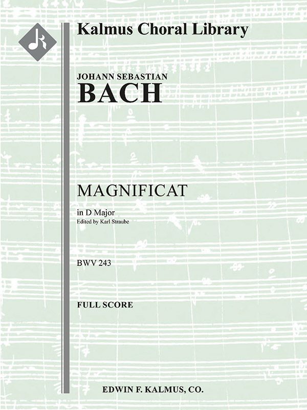 Johann Sebastian Bach (1685-1750) vertonte den Text des Magnificat, BWV 243, erstmals 1723, nachdem er sein Amt als Thomaskantor in Leipzig angetreten hatte, allerdings in der Tonart Es-Dur. Diese ursprüngliche Fassung (katalogisiert als 243.1) wurde am Weihnachtstag 1723 in der Leipziger Thomaskirche uraufgeführt und enthielt neben den zwölf Sätzen des Magnificat vier Weihnachtslieder. Bach überarbeitete das Werk 1733, indem er die Tonart zugunsten der Naturtrompeten auf D änderte und die Instrumentation durch Querflöten und Oboen d'amore leicht erweiterte. Diese zweite Fassung (243.2) wurde wahrscheinlich am 2. Juli desselben Jahres zum Fest Mariä Heimsuchung aufgeführt, einem Feiertag, der mit dem Magnificat-Text in Verbindung gebracht wird, was auch dazu führte, dass die vier Weihnachtslieder gestrichen wurden. Die zweite Fassung in D ist die heute am häufigsten aufgeführte. Die vorliegende Ausgabe stammt von Karl Straube (1873-1950), einem deutschen Chordirigenten und Organisten. Besetzung: 2.2+2 obd'a.0.1: 0.3.0.0: Timp: Hpchd.Org: Str (2-2-2-1-1 im Satz): Soli SATB: SSATB Chorus.