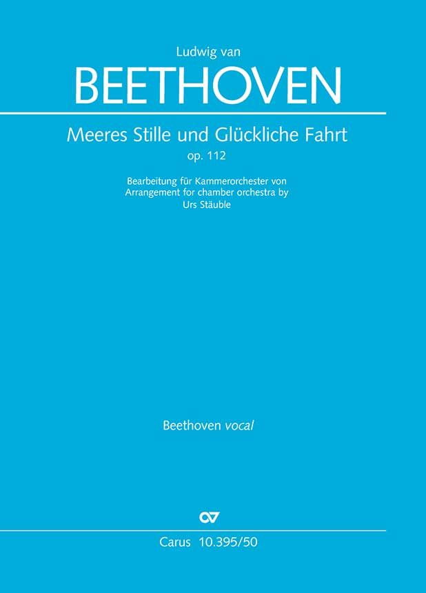 Ludwig van Beethovens "Meeres Stille und Glückliche Fahrt" op. 112 für vierstimmigen Chor und sinfonisches Orchester vertont ein Gedichtepaar Johann Wolfgang von Goethes und lässt sich am ehesten als Chor-Ode einordnen. Die 1815 uraufgeführte Komposition beeindruckt bis heute durch ihre atmosphärische Tiefe. Obwohl Beethoven selbst nie zur See fuhr, gelingt ihm eine eindrucksvolle Darstellung der Seefahrt: Die bedrohliche Windstille - im Zeitalter der Segelschifffahrt gleichbedeutend mit Immobilität und knapp werdenden Lebensmitteln - wird durch tiefe Chorpassagen über pianissimo gehaltenen Streicherflächen vertont. Bei der "ungeheuren Weite" überrascht ein plötzliches Forte-Crescendo, das sich über mehr als fünf Oktaven erstreckt. Im Kontrast dazu steht die "Glückliche Fahrt" mit unruhigen zusammengesetzten Metren und fließenden diatonischen Skalenläufen, die Zuversicht und freudige Erregung ausdrücken. Die vorliegende Bearbeitung für Kammerorchester ermöglicht es auch kleineren Chören und Chören mit begrenzten räumlichen oder finanziellen Möglichkeiten, in See zu stechen. Für diese Bearbeitung können Klavierauszug und Chorpartitur der Originalausgabe (Carus 10.395/00) verwendet werden. Für einen ausgewogenen Klang im Orchester wird empfohlen, die Streicher nicht solistisch, sondern 4 (3) / 4 (3) / 2 / 2 / 1 zu besetzen. Originalversion: Coro SATB, 2 Fl, 2 Ob, 2 Clt, 2 Fg, 4 Cor, 2 Tr, Timp, 2 Vl, Va, Vc, Cb, Bearbeitung für Kammerorchester: Coro SATB, Fl, Ob, Clt, Fg, Cor, Tr, Timp, 2 Vl, Va, Vc, Cb.
