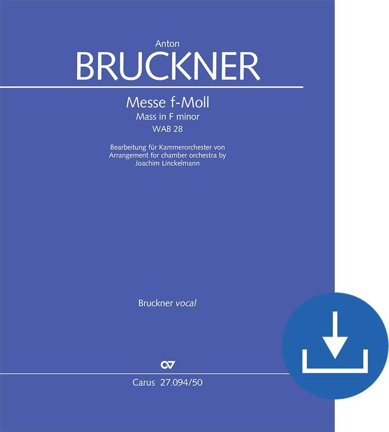 Bruckners große "Messe f-Moll" gehört zu den bedeutendsten Werken des Komponisten – und der Chormusik des 19. Jahrhunderts überhaupt. In einzigartiger Weise gelingt es dem Komponisten hier, die Glaubensinhalte musikalisch zu durchdringen. Dabei wagt er sich in extreme Ausdrucksbereiche vor, was im Zuge der ursprünglich geplanten Uraufführung im November 1868 zu Verwerfungen mit den Musikern führte. In der Folgezeit setzte sich das Werk jedoch mehr und mehr durch und ist bis heute eine sehr reizvolle Herausforderung für leistungsstarke Chöre. Mit der vorliegenden Bearbeitung des erfahrenen Arrangeurs und Orchestermusikers Joachim Linckelmann ist es möglich, das Werk in kleinerem Rahmen aufzuführen. In seiner Fassung für Soli, Chor und Kammerorchester reduziert er die Bläser von original 15 auf nur 7. Die Streicher bleiben in ihren Partien identisch mit dem Original, können aber in der Besetzungsstärke nun ebenfalls zurückgenommen werden. Die Vokalstimmen (Soli und Chor) sind von der Bearbeitung völlig unberührt, sodass aus den Klavierauszügen und Chorpartituren der Carus-Urtextausgabe gesungen werden kann. / - Großes Werk auch für kleinere Chöre aufführbar - 15 Bläser der Originalfassung auf 7 reduziert - Passt zu Klavierauszügen und Chorpartituren der Originalfassung - carus plus: Das Werk (Originalfassung) ist in der App carus music, the Choir Coach, erhältlich / Originalversion: Soli SATB, Coro SSAATTBB, 2 Fl, 2 Ob, 2 Clt, 2 Fg, 2 Cor, 2 Tr, 3 Trb, Timp, 2 Vl, Va, Vc, Cb; Bearbeitung für Kammerorchester: Soli SATB, Coro SSAATTBB, Fl, Ob, Clt, Fg, Cor, Tr, Trb, Timp, 2 Vl, Va, Vc, Cb