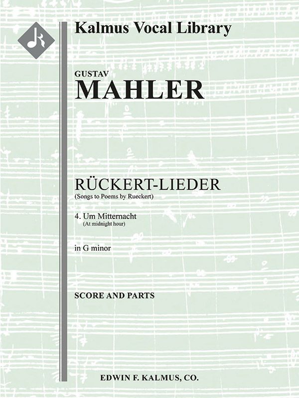 Gustav Mahler (1860-1911) komponierte zwischen 1901 und 1902 Lieder zu Gedichten von Rückert (Lieder nach Rückert; Rückert-Lieder). Sie waren nicht als Zyklus konzipiert, da die einzelnen Lieder nur durch den Dichter Friedrich Rückert und die Themen miteinander verbunden waren. Sie wurden jedoch zusammen veröffentlicht, zunächst als Sieben Lieder aus letzter Zeit mit zwei weiteren Mahler-Liedern, dann nur mit den fünf Liedern. Sie sind einfach als Rückert-Lieder bekannt geworden und werden heute am häufigsten zusammen aufgeführt, obwohl Mahler neben diesen fünf Liedern auch andere Rückert-Gedichte vertont hat. Die ersten vier Lieder orchestrierte Mahler selbst, während das fünfte Lied, Liebst du um Schönheit, nach Mahlers Tod von Max Puttmann orchestriert wurde. Das vierte Lied, Um Mitternacht, entstand im Sommer 1901 und wurde zusammen mit den anderen ersten vier Liedern am 29. Januar 1905 in Wien uraufgeführt, Mahler dirigierte. Während die anderen vier Lieder eher lyrisch sind, hebt sich das vierte als strenge symphonische Ode ab, mit hymnischen Vertonungen für das Orchester, die breite kontrapunktische Linien und einen großen Bläserchoral enthalten. Die Fassungen in a-Moll, h-Moll und g-Moll sind beim Verlag erhältlich. Besetzung: 2.0+Obd'a.2.2+CBsn: 4.2.3.1: Timp: Hp.Pno: Solostimme.