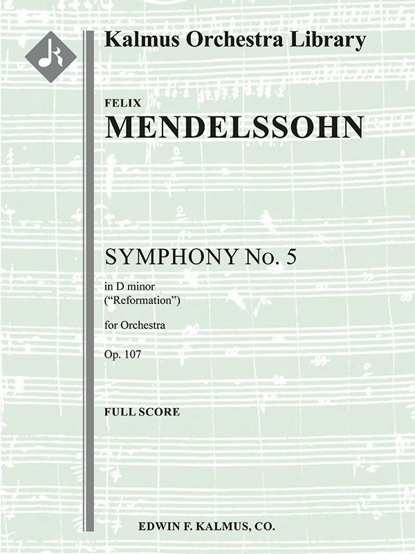Felix Mendelssohn (1809-1847) schrieb seine Symphonie Nr. 5 in D, op. 107 "Reformation" im Jahr 1830. Sie wurde zu Ehren des 300. Jahrestages der Übergabe des Augsburger Bekenntnisses komponiert, einem lutherischen Feiertag, an dem die Übergabe des Bekenntnisses an Kaiser Karl V. im Jahr 1530 gefeiert wird. Das Werk war eigentlich das zweite große symphonische Werk, das Mendelssohn komponierte, aber es wird als das fünfte bezeichnet, da es 1868, 21 Jahre nach dem Tod des Komponisten, veröffentlicht wurde. Den Beinamen "Reformationssymphonie" erhielt das Werk von Mendelssohns Schwester Fanny Mendelssohn Hensel. Obwohl es im Dezember 1831 in Paris uraufgeführt werden sollte, weigerten sich die Musiker, es aufzuführen, weil es zu viel Kontrapunkt und zu wenig Melodie enthielt. Die eigentliche Uraufführung fand am 15. November 1832 in Berlin statt. Besetzung: 2.2.2.2+CBsn: 2.2.3.0: Timp: Str (9-8-7-6-5 im Satz).