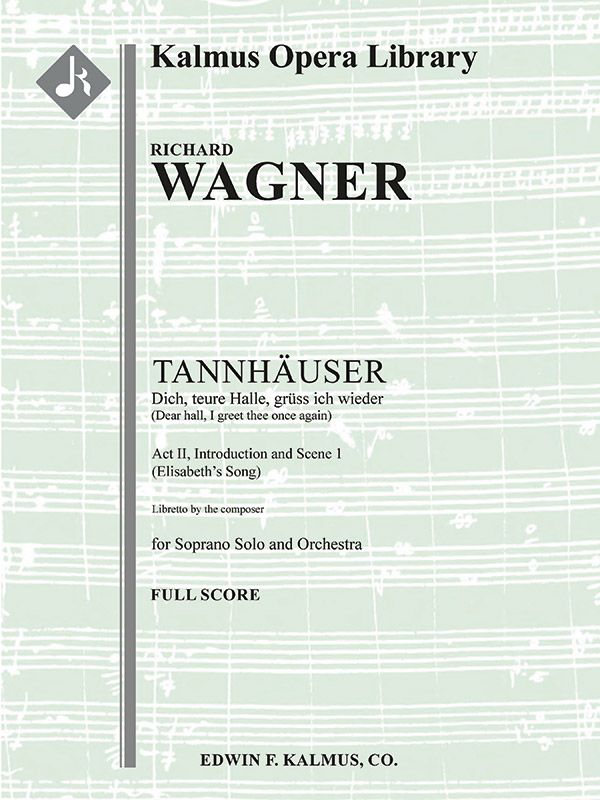 Tannhäuser, eine Oper in drei Akten aus dem Jahr 1845 von Richard Wagner (1813-1883), verbindet zwei deutsche Legenden: den mythologisierten mittelalterlichen deutschen Minnesänger und Dichter und die Geschichte des Wartburg-Liederwettbewerbs. Wie in vielen Werken Wagners geht es in der Geschichte um den Konflikt zwischen heiliger und profaner Liebe sowie um die Erlösung durch die Liebe. Die Uraufführung fand am 19. Oktober 1845 im Königlichen Hoftheater Dresden statt, und diese Ausgabe von 1845 wird als "Dresdner Fassung" bezeichnet. Für eine Aufführung am 13. März 1861 an der Pariser Opéra wurde eine stark überarbeitete Fassung erstellt, die Wagner jedoch aufgrund des Gejohle des sehr kritischen Publikums nach nur drei Aufführungen zurückzog. Weitere Überarbeitungen der Pariser Fassung wurden 1875 vorgenommen, um die "Wiener Fassung" zu schaffen, einschließlich einer Rückkehr zum Deutschen statt zum Französischen, und es ist diese aktualisierte Version der Pariser Fassung, die heute am häufigsten verwendet wird. Die gesamte Oper bleibt ein wichtiger Bestandteil des Opernrepertoires. "Dich, teure Halle, grüß ich wieder" erklingt in der Eröffnungsszene des zweiten Aktes. Es wird von Elisabeth gesungen, die ihre Traurigkeit über die Abreise Tannhäusers zum Ausdruck bringt, sich aber über seine Rückkehr und die Lieder, die er singen wird, freut. Besetzung: 2.2.2.2: 4.0.0.0: Str (4-4-3-3-3 im Satz): Solo-Sopran.