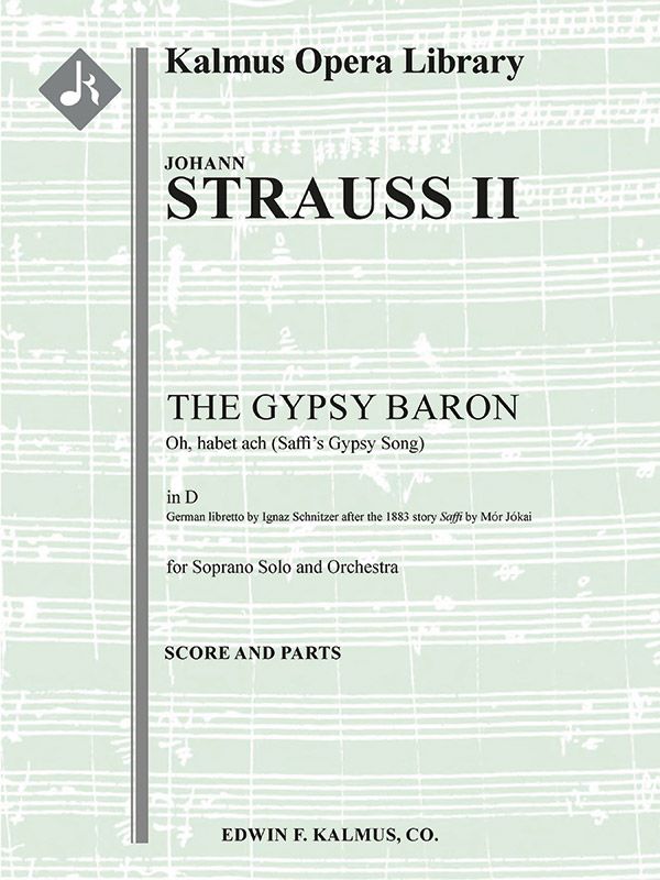 DER ZIGEUNERBARON ist eine Operette in drei Akten von Johann Strauss II (1825-1899), die am 24. Oktober 1885 im Theater an der Wien uraufgeführt wurde. Das Libretto stammt aus der Feder des Schriftstellers Ignaz Schnitzer und basiert auf der Erzählung Saffi von Mór Jókai. Es spielt im Ungarn des 18. Jahrhunderts und erzählt die Geschichte eines Zigeunermädchens, das als Tochter eines türkischen Paschas und Besitzerin eines verborgenen Vermögens entdeckt wird. Im Lied OH, HABET ACH des ersten Aktes rühmt sich das Zigeunermädchen Saffi der Unberechenbarkeit ihrer Art, bezeichnet sie als "Kinder der Nacht" und warnt, dass jeder, der ihnen begegnet, so schnell wie möglich vor ihnen fliehen sollte. Instrumentierung: 2.2.2.2: 4.2.3.0: Timp.Perc(2-3): Hp: Str (4.4.3.3.3 im Satz): Solo Sop.