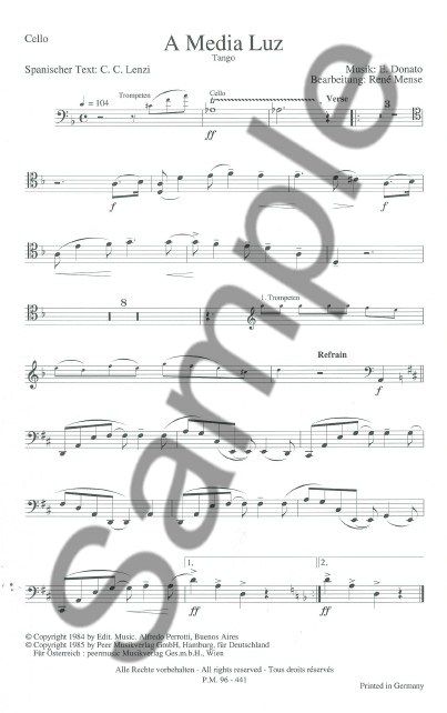 A Media Luz and Der Schatz Der Sierra Madre arranged for Salon Orchestra by Rene Mense. Parts for the following instruments:
