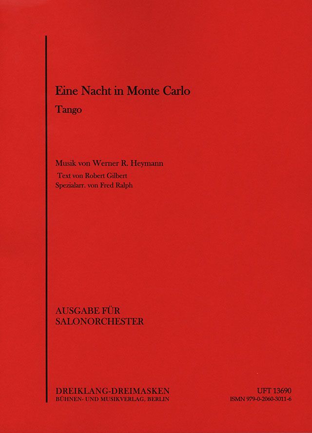 1x Flöte, 1x Trompete 1 in B, 2x Bass, 2x violoncello, 3x Schlagzeug, 1x Banjo, 1x Posaune, 1x Trompete 2 in B, 1x Tenor-saxophon 2 in B, 1x Alt-saxophon 3 in ES, 2x Klarinette 1-2 in B, 1x Alt-saxophon 1 in Es, 1x Akkordeon, 4x Violine obligat/Violine 1, 1x Klavier-Direktion