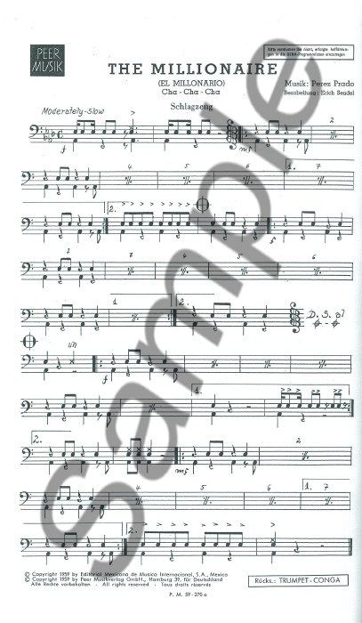 Perez Prado's The Millionaire and Trumpet-Conga by Danny Davis and Don George, arranged by Erich Sendel for Salon Orchestra. Parts are included for thefollowing instruments: