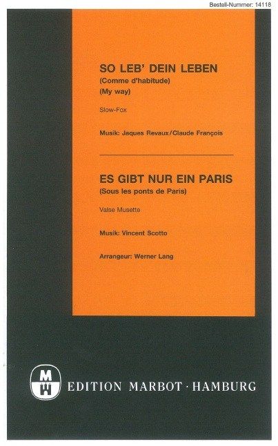My Way by Jaques Revaux/Claude Francois and Sous Les Ponts De Paris by Vincent Scotto. Arranged for Salon Orchestra by Werner Lang. Parts are included for thefollowing instruments: