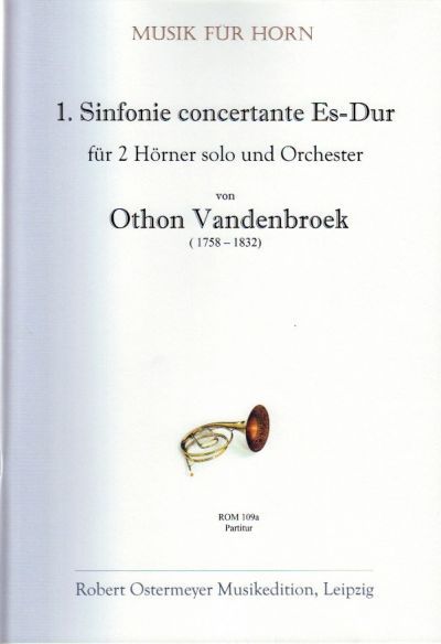 "Premier / Symphonie / concertante / pour deux cors principaux, deux Violons, Alto, / Basse, Bassons, Cors et Hautbois ad libitum. / dédiée / à Monsieur le Chevalier / De Gilede de Lestang / Capitaine au Regiment de Vintinille / par / Othon Vandenbroek"