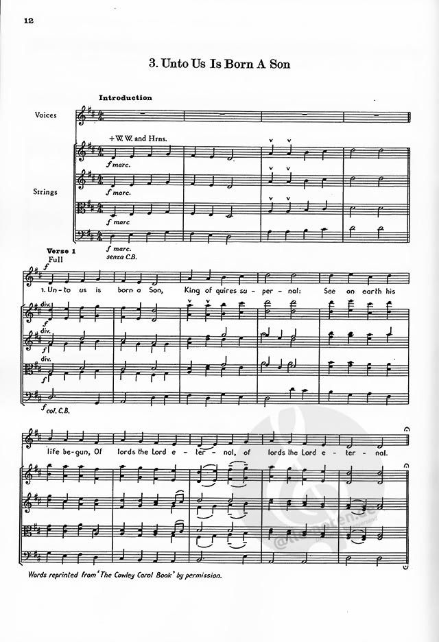These five Christmas Carols have been arranged by David Willcocks for orchestra to accompany his SATB arrangement, the vocal score of which is sold by Oxford University Press (ISBN 0193535637). This orchestral accompaniment may be played by strings only. The piano or organ part shown in the vocal score may be added if required. This orchestration was originally published by OUP (now out of print) and was republished by us in 2004. The new edition is entirely compatible with the OUP original edition.