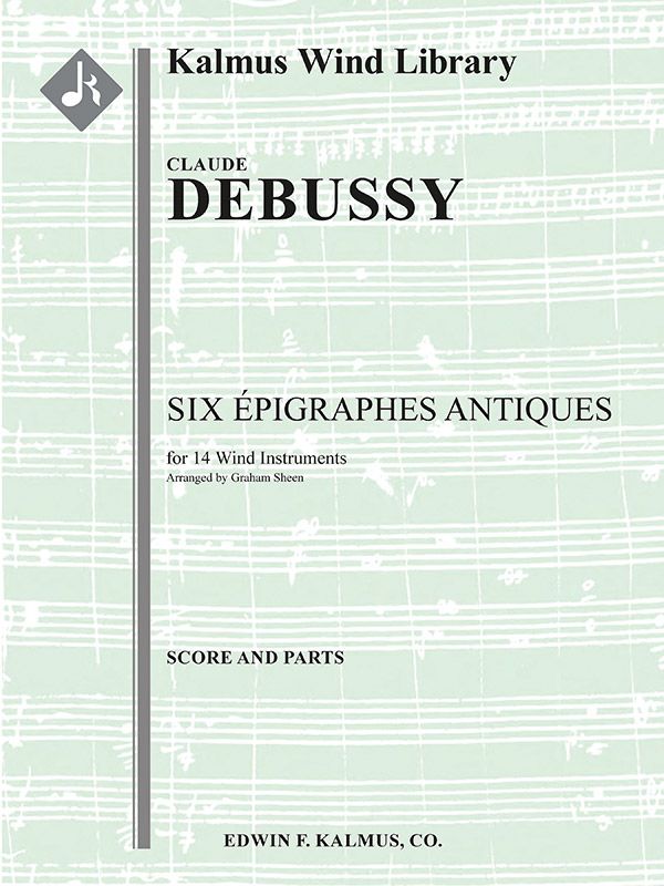 Six épigraphes antiques wurde ursprünglich 1914 von Claude Debussy (1862-1918) für Klavierduo geschrieben. Während der Komponist selbst das Werk im darauffolgenden Jahr für Klavier solo transkribierte, wurde die erste Orchestrierung für ein großes Ensemble vom Schweizer Dirigenten Ernest Ansermet im Jahr 1939 fertiggestellt. Die vorliegende Fassung für ein Bläserensemble von 14 Instrumenten wurde erstmals 1994 von Graham Sheen arrangiert und 2022 überarbeitet. Sätze: 1. Pour invoquer Pan, dieu du vent d'été ("Um Pan, den Gott des Sommerwindes, anzurufen"), 2. Pour un tombeau sans nom ("Für ein namenloses Grab"), 3. Pour que la nuit soit propice ("Damit die Nacht günstig ist"), 4. Pour la danseuse aux crotales ("Für die Tänzerin mit den Crotales"), 5. Pour l'égyptienne ("Für die ägyptische Frau") und 6. Pour remercier la pluie au matin ("Zum Dank für den morgendlichen Regen").