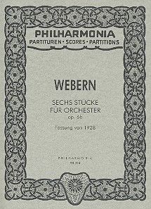 Dieses Werk, 1909 entstanden, wendet die in den Streichquartettstücken neu erschlossenen Möglichkeiten der atonalen Instrumentalkomposition auf ein großes Instrumentarium an, auf das größte, das Webern je vorgeschrieben hat: 4 Flöten (auch 2 kleine Flöten und 1 Alt-Flöte), 2 Oboen, 2 Englischhörner, 3 Klarinetten, 2 Bassklarinetten, 2 Fagotte (auch 1 Kontrafagott), 6 Hörner, 6 Trompeten, 4 Posaunen, Basstuba, 2 Harfen, Celesta, 3 Pauken, Triangel, Glockenspiel, Rute, Becken, Tamtam, Kleine und Große Trommel, tiefes Glockengeläute und Streicher. Diese ungeheuren Klangmassen werden aber so gut wie nie geschlossen eingesetzt. Typisch für Weberns Instrumentation ist etwa der Beginn des ersten Stückes: Eine Melodielinie von zwei Takten Umfang ist zwischen 1. Flöte, 1. Trompete (mit Dämpfer), wiederum 1. Flöte und 3. Horn (mit Dämpfer) aufgeteilt. Daneben gibt es Massierungen von einheitlicher Klangfarbe, besonders die bedrückenden Ballungen von Blechbläsern und Schlagwerk im vierten Stück, der marcia funebre.