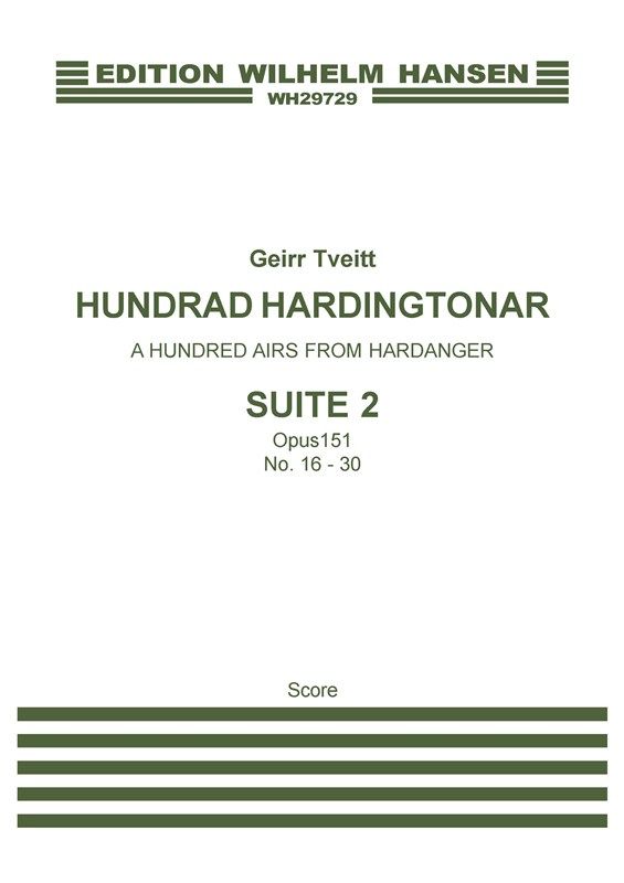 Hundrad HardingtonarSuite 2, Opus 151, No. 16 - 301958. Edited by Per Drier. Orchestration: 3(3pic). 2+ca. 2+bcl. 2+cbn/4. 3. 3. 1/timp. perc/hp/cel(pf)/strDuration 38 min.