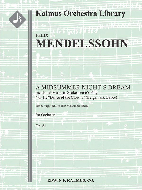 Felix Mendelssohn (1809-1847) schrieb gleich zweimal Musik zu William Shakespeares Stück EIN SOMMERNACHTSTRAUM. Die erste, die Konzertouvertüre in E-Dur op. 21, schrieb er 1826 im Alter von siebzehn Jahren aus keinem anderen Grund als der Liebe, die er und seine Geschwister für Shakespeares Bühnenwerke hegten. Die Schauspielmusik op. 61 (die wohl bekannteste Schauspielmusik des Repertoires) schrieb er 1842 im Auftrag von König Friedrich Wilhelm IV. von Preußen. Bei der Erstellung der vollständigen späteren Fassung übernahm der Komponist die ursprüngliche Ouvertüre op. 21 als Ouvertüre für die Bühnenmusik und die erste der 14 Nummern. Das Werk beginnt mit vier der wohl eindrucksvollsten und einprägsamsten Akkorde in der Musik und ist auch der Ursprung des Hochzeitsmarsches (Nr. 9), der heute bei so vielen Zeremonien verwendet wird und allgemein als "Here Comes the Bride" bezeichnet wird. Das Werk wurde am 14. Oktober 1843 in Potsdam vom Gewandhausorchester Leipzig unter der Leitung des Komponisten uraufgeführt. Der Satz "Tanz der Clowns" (Bergamaskentanz), Nr. 11, ist eine abgewandelte Wiederaufführung des Eselstanzes von Nick Bottom aus der Ouvertüre. Besetzung: 2.2.2.2: 2.0.0.1: Timp: Str (9.8.7.6.5 im Satz).