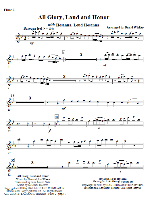 (with Hosanna, Loud Hosanna) - Flute 2