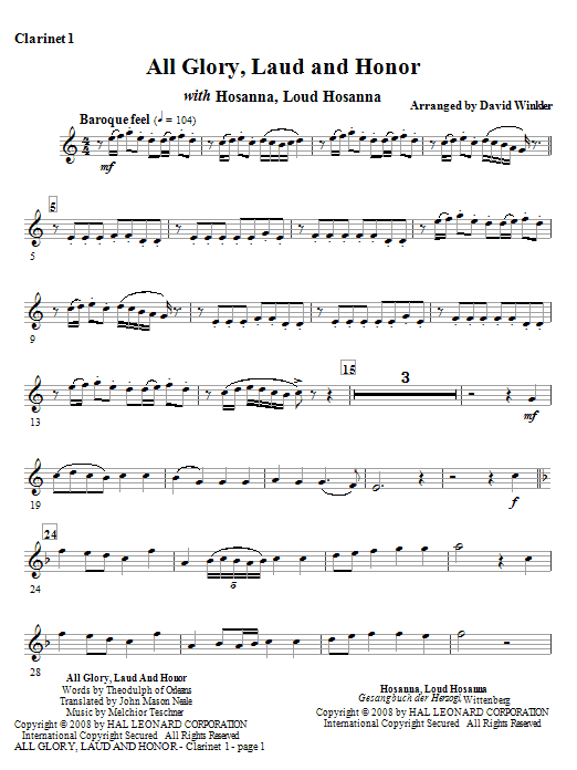 (with Hosanna, Loud Hosanna) - Bb Clarinet 1