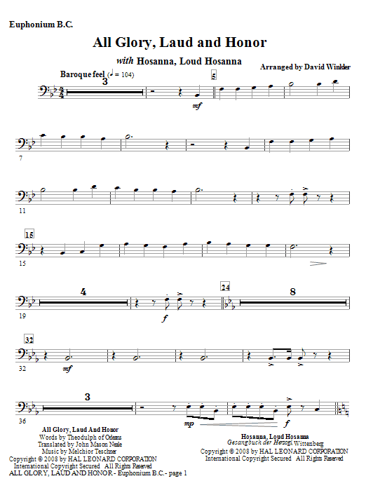(with Hosanna, Loud Hosanna) - Euphonium BC