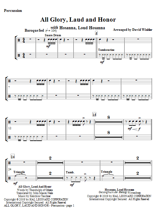 (with Hosanna, Loud Hosanna) - Percussion