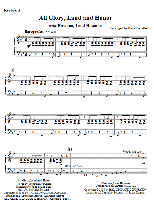 Designed especially for church orchestras, this festive pairing of two hymns works well for the Easter season or in any service where you would like to program an instrumental piece. With careful attention to ranges, keys, and accessibility, this piece is workable for a wide variety of instrumental groups. Parts are included for all band and orchestral instruments, with strings being completely optional.