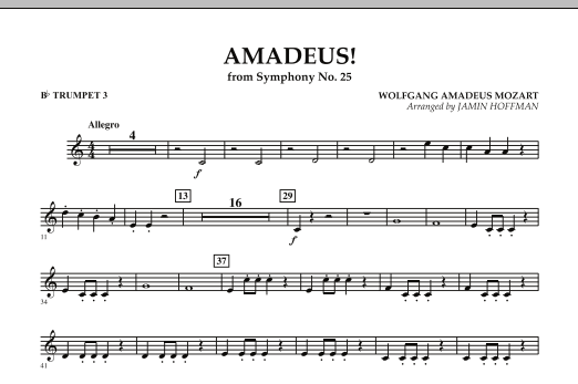 Symphony No. 25 begins with one of Mozart's most recognized themes, as heard in the classic Oscar-winning film Amadeus. Jamin Hoffman has placed the first movement in an accessible, practical format that can be performed by school orchestras with confidence.