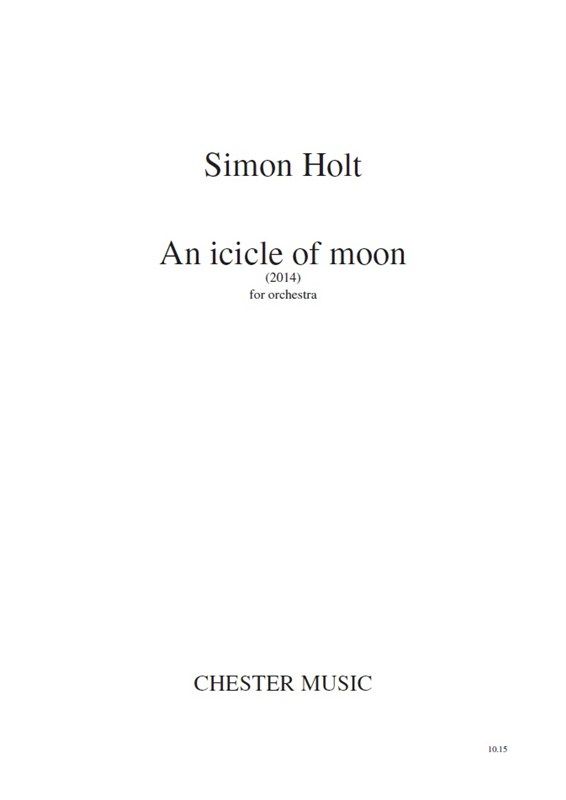 This is the study score for Simon Holt 's An Icicle Of Moon, a work for Orchestra. The piece was commissioned by Bamberger Symphoniker and its first performance was on 31st October 2014 at the Joseph-Keilberth-Saal, Bamberg. A full performance of the work lasts around 6 1/2 minutes. The title of this work is taken from a phrase from a poem by Federico García Lorca.