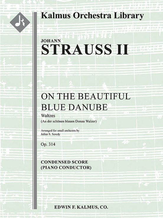 An der Schönen Blauen Donau (On the Beautiful Blue Danube), Op. 314, written by Johann Strauss II (1825-1899) is one of the most popular works in classical music, and remains well-known in popular culture. Written in 1866, it premiered on February 15 of the following year in Vienna at a Wiener Männergesangsverei concert, Strauss conducting. It has been arranged for different ensembles numerous times, and it has been used in everything from Warner Brothers cartoons to major science fiction films to video game scores. This version for small orchestra was arranged by Julius Seredy. Instrumentation: 1.2.2.2: - 2.2.1.0: Timp.Perc(2): Pno Cond Sc in set: Str (9-8-7-6-5 in set).