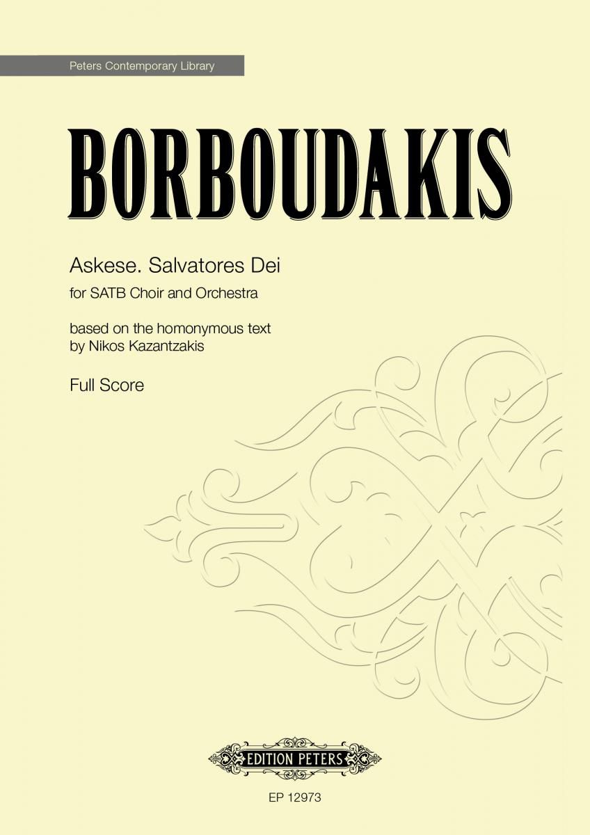 Askese. Salvatores Dei von Minas Borboudakis ist ein 26-minütiges Werk für gemischten Chor und Orchester (2(1/2,Picc,AFl).2(1/2,CorA).2(1/2,BCl).2(1/2,Cbsn) - 4.2(1,PiccTpt/2).2(1/2,BTbn).0 - Timp.2Perc - Str). Es basiert auf dem gleichnamigen Text von Nikos Kazantzakis, welcher sich mit dem täglichen Kampf des Menschen auf der Suche nach Wahrheit und nach Gott beschäftigt. Das anfangs sehr üppige Klangbild wird immer mehr dekonstruiert um es am Ende auf intensive Weise implodieren zu lassen. Die Uraufführung fand statt am 15. November 2013 in der Herz-Jesu-Kirche, München mit dem Rundfunkorchester und Chor des Bayerischen Rundfunks unter der Leitung von Ulf Schirmer.