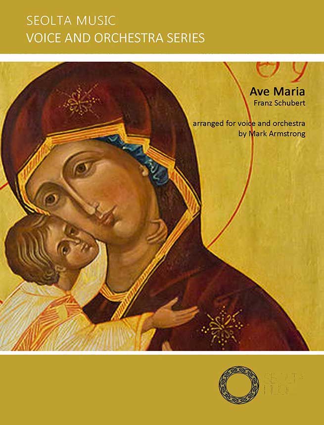 Franz Schuberts berühmtes Ave Maria arrangiert von Mark Armstrong für Gesang und kleines Orchester (Fl, Ob, Hn, Hp, Streicher).