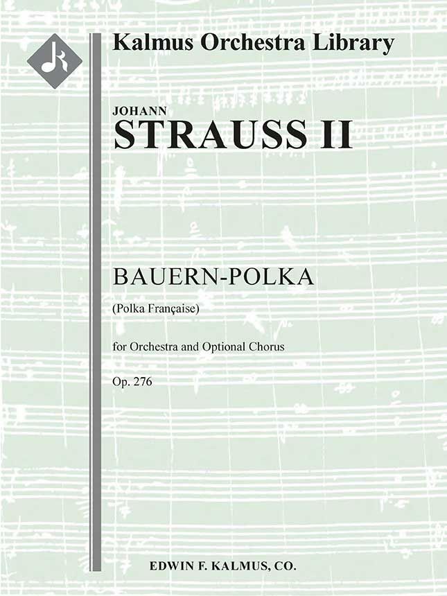 Die BAUERN-POLKA (POLKA FRANÇAISE) op. 276 von Johann Strauss II (1825-1899) enthielt als einziges Werk eine Gesangsstimme für Chor, die vom ersten Publikum schnell aufgenommen wurde. Die Uraufführung fand bei einem Wohltätigkeitskonzert in Pawlowsk am 29. August 1863 statt. Die anfängliche Popularität veranlasste Zar Alexander II. dazu, eine Aufführung zu verlangen. Heute wird der Chorpart im Allgemeinen von den Mitgliedern des Orchesters gesungen. Besetzungen: 1+Picc.2.2.2: 4.2.1.0: Timp.Perc(1): Str (9.8.7.6.5 im Satz): Mx Chor (opt.): Pno Cond Sc im Satz.