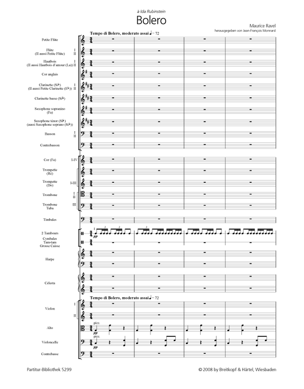 Im Vorwort beleuchtet Monnard Ravels Klangästhetik vor dem Hintergrund von Konzertrezeption und historischen Einspielungen. Zudem gibt der Herausgeber Einblicke in Ravels Tempovorstellungen: "Ich muss gestehen, dass der Bolero selten so dirigiert wird, wie ich glaube, dass er es eigentlich sein sollte. Mengelberg beschleunigt und verlangsamt übermäßig. Toscanini dirigiert ihn zweimal schneller, als es sein müsste und verbreitert das Tempo am Schluss, was nirgendwo geschrieben steht. Nein: der Bolero muss in einem einzigen Tempo von Anfang bis Ende gespielt werden, im klagenden und monotonen Stil der arabisch-spanischen Melodien."