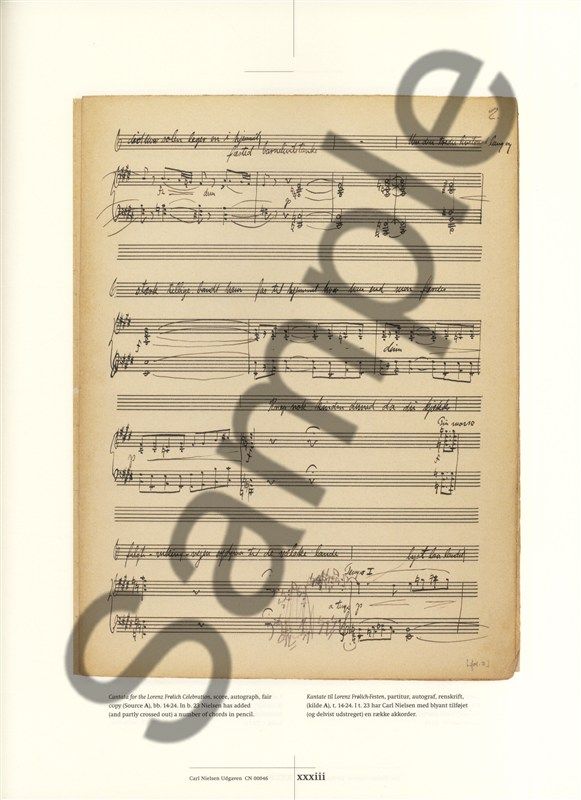 Contents: Cantata for the Lorenz Frøhlich celebration - Cantata for the inauguration of the Student Union building - Cantata for the annual University Commemoration, op. 24 - Cantata for the commemoration of the 250th anniversaryof the storming of Copenhagen - Cantata for the opening ceremony of the National Exhibition in Aarhus 1909.